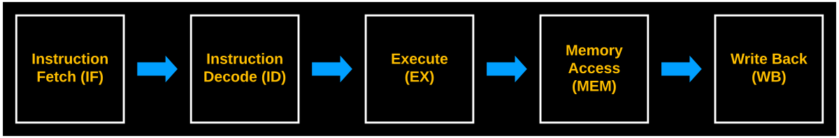This processor adheres to a five-stage pipeline, common to RISC architecture, processing a discrete instruction per cycle. Each instruction passes through all five stages before loading a subsequent instruction – as opposed to pipeline processors, capable of loading subsequent instructions after the previous completes the first stage and mitigating any data hazards caused by multiple instructions performing simultaneous read and write instructions for a register value. This sequential architecture provides the inherited advantage of avoiding such data hazards.